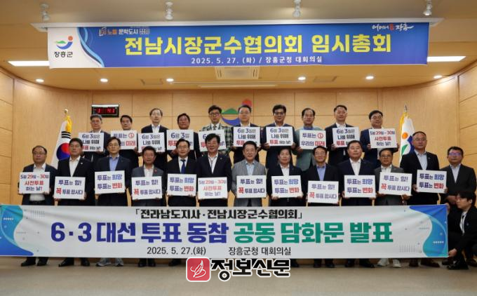 협의회장 김성 장흥군수는 “투표는 단순한 행위가 아닌 대한민국의 미래를 결정하는 가장 강력한 방법”이라며, “우리나라 민주주의의 가치를 수호하기 위해 전남도민 여러분께서 소중한 한 표를 행사해 주시기를 바란다” 라고 밝혔다.