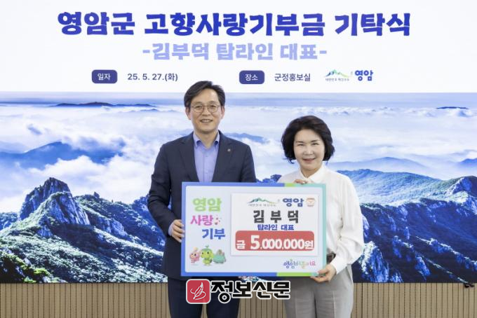 2023년 500만원, 지난해 가족과 1,000만원을 기부하며 영암군 고향사랑기부를 이끌고 있는 박 대표는, “영암 발전과 영암군민 삶의 질 향상에 보탬이 되길 바란다”고 말했다. 하루 뒤인 27일 김부덕 ㈜탑라인대표도 영암군청에서 500만원을 기부했다.