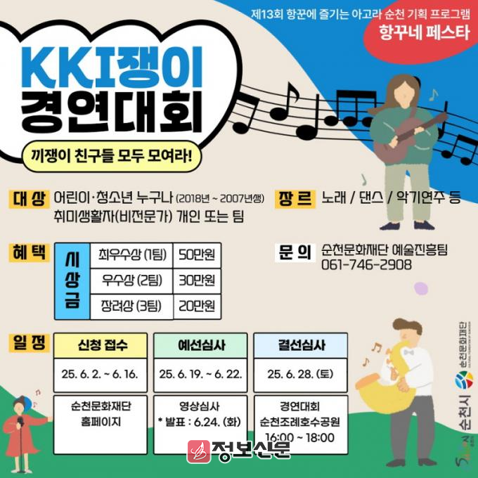 순천문화재단 관계자는 “이번 경연대회는 아동·청소년들이 끼와 재능을 마음껏 발휘할 수 있도록 기획된 참여형 예술 축제로, 많은 관심과 참여를 바란다”고 말했다.