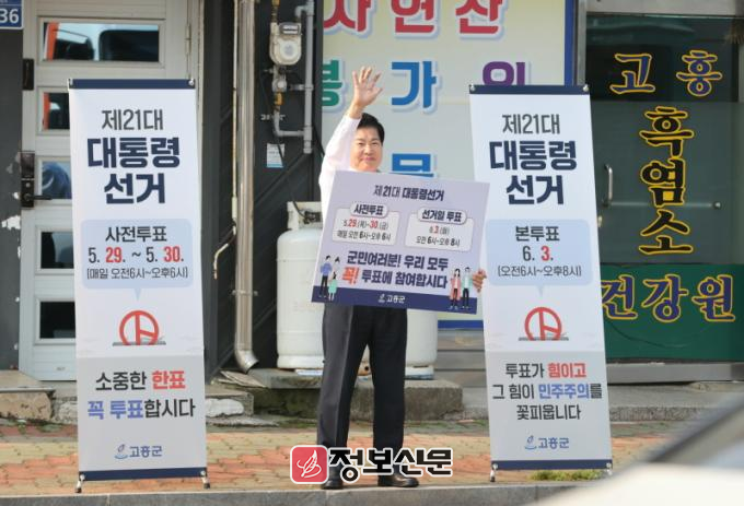 ![]() 공영민 고흥군수, 투표참여 독려 위한 출근길 1인 피켓 홍보 나서 |