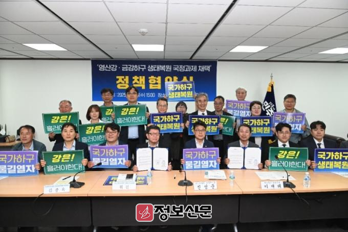 국가하구생태복원전국회의(이하 전국회의) 상임의장인 이 의원은 지난 28일 국회의원회관에서 더불어민주당 중앙선거대책위원회 정책본부, 기후위기대응위원회와 함께 정책협약식을 열고, ‘영산강ㆍ금강하구 생태복원’ 등 주요 현안을 차기 정부의 대선 국정과제로 채택하기 위한 공동 협력체계를 구축했다.
