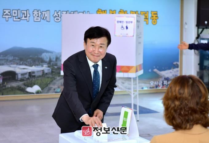 이날 오전 9시 20분 투표소를 찾은 정 시장은 선거의 중요성을 강조하며 선거일 당일 투표가 어려운 유권자들에게 사전투표 참여를 적극 독려했다.