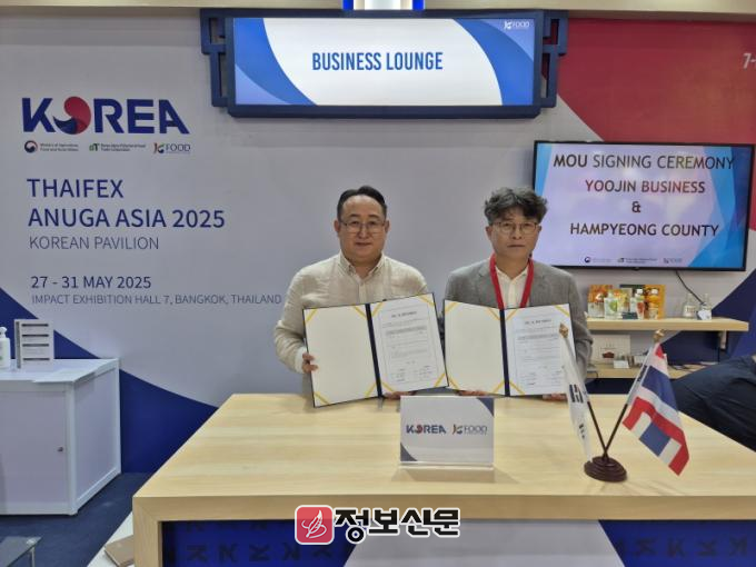 함평군은 태국 방콕에서 ‘THAIFEX–Anuga Asia 2025’ 국제 식품박람회에 참가해 지난 28일 유진비즈니스(대표 박수한)와 조미김 수출을 위한 업무협약을 체결했다고 29일 밝혔다.