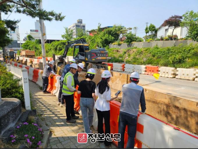 특히, 이날 현장점검은 집중호우 전 공정추진구간(녹사주공아파트, 6월 말 관로매설 완료) 공정계획 등을 사전 확인하여 안전하고 견실한 사업 수행을 위하여 영산강유역환경청 합동으로 실시하였고, 안전보건관리체계 구축 및 재해예방과 안전교육 등에 대하여 추가로 점검하고 지속적으로 실시하도록 안내하였다.