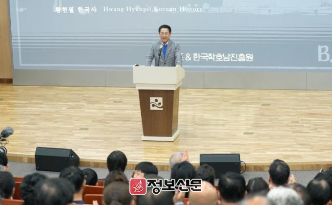 강연회는 ‘전라도 역사이야기’를 주제로 김영록 전남도지사와 도민, 공직자 등 400여 명이 참석한 가운데 진행됐다.