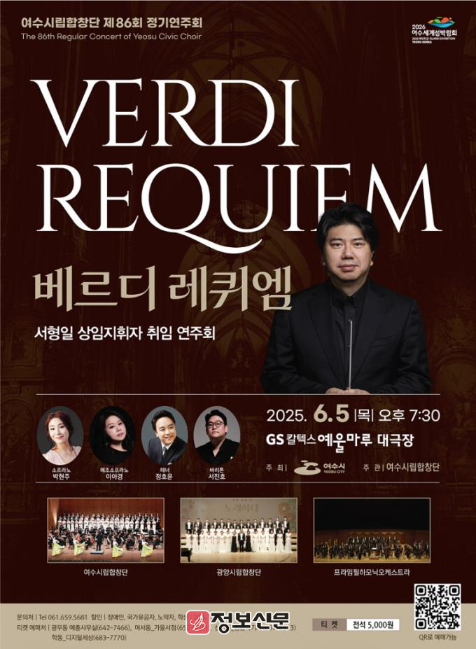 ![]() 여수시립합창단, 제86회 정기연주회 ‘베르디 레퀴엠’ 개최 |