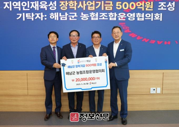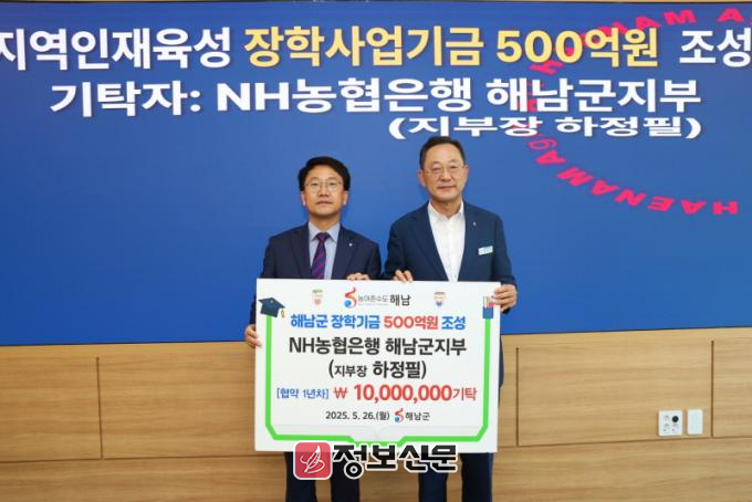 하정필 NH농협은행 해남군지부장은“농협은행은 단순한 금융기관을 넘어 지역 주민과 함께 성장하는 지역밀착형 은행으로의 역할을 충실히 수행하고 있다”며“장학사업기금 기탁은 지역사회 발전과 인재 양성에 직접적으로 기여하는 상생의 실천으로,함께할 수 있어 기쁘게 생각한다”고 밝혔다.