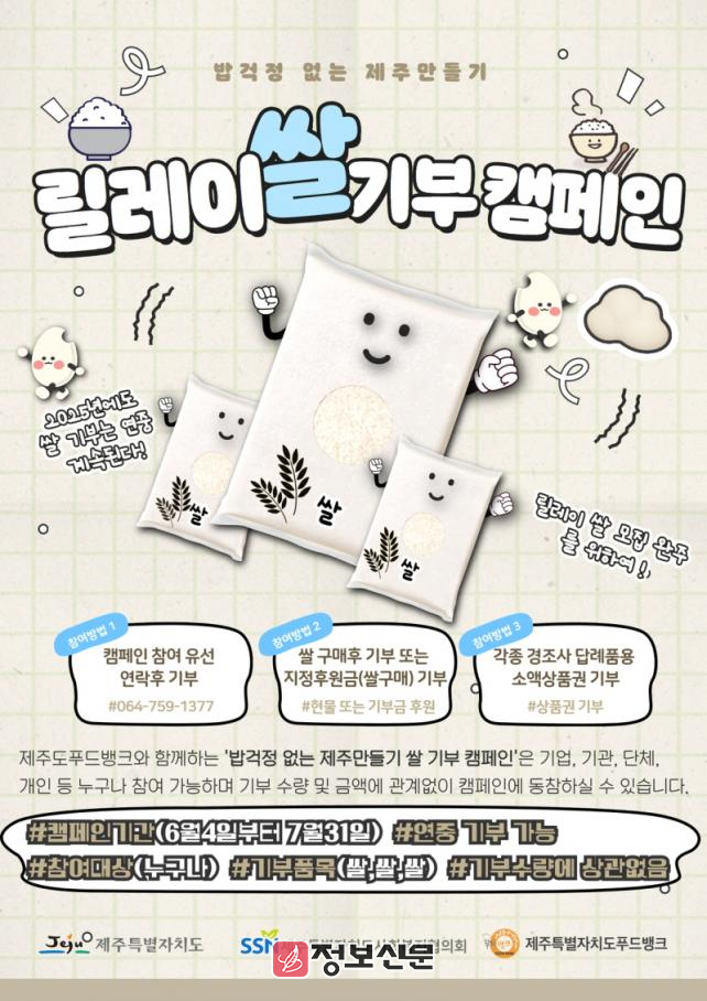 ![]() 제주특별자치도, 2025 밥걱정 없는 제주 만들기-릴레이 쌀 기부 캠페인 진행 |