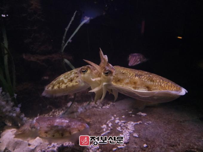 이번에 새롭게 단장한 ‘두족류·패류 특별전시관’에선 갑오징어, 문어, 참소라(피뿔고둥), 키조개, 홍합(진주담치) 등 우리 연안에서 흔히 볼 수 있지만 평소 접하기 어려운 수산생물을 직접 관찰할 수 있다. 생동감 넘치는 해양생물의 세계를 시각적으로 체험하도록 구성됐다.