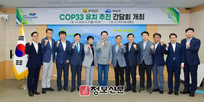 ![]() 여수시(시장 정기명)가 2일 시청 상황실에서 전라남도 및 지역 시민단체와 제33차 유엔기후변화협약 당사국총회(COP33) 남해안 남중권 유치를 위한 간담회를 개최했다. |