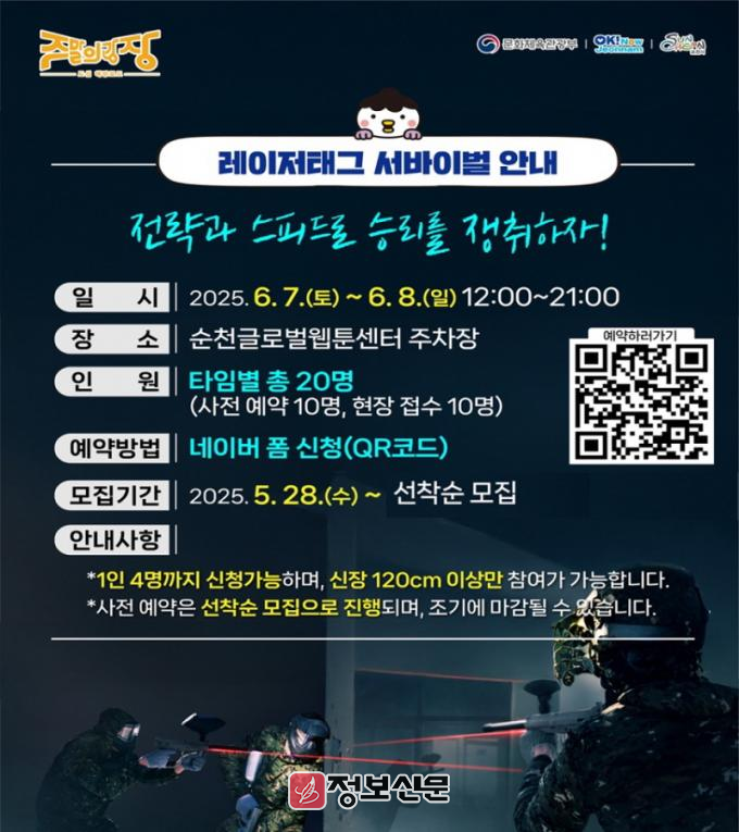 ![]() 순천시, 주말의 광장 서바이벌 레이저 태크 프로그램 운영 |