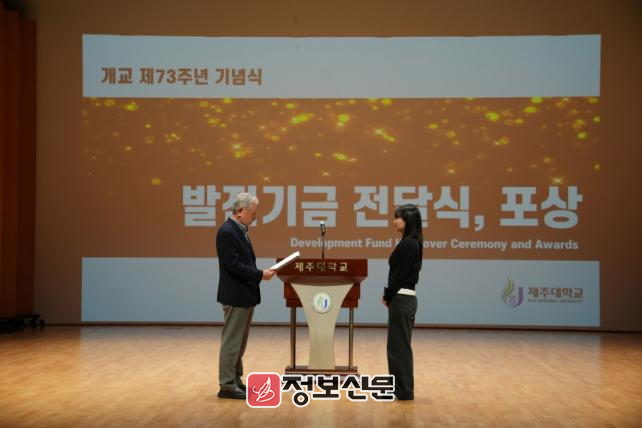 이번 전달식에서는 제주대학교 건축학전공 양은수 학생을 포함한 12명의 학생들에게 각각 200만원씩 총 2200만원의 장학금이 수여됐다.