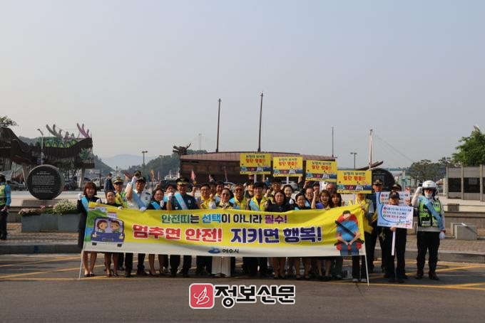 이날 캠페인에는 여수시, 여수경찰서, 모범운전자회, 녹색어머니회 등 민관 70여 명이 참여해 “보행자 보이면 일단 멈춤!”, “안전띠는 생활입니다” 등의 구호를 전하며 시민들의 실천 참여를 유도했다.