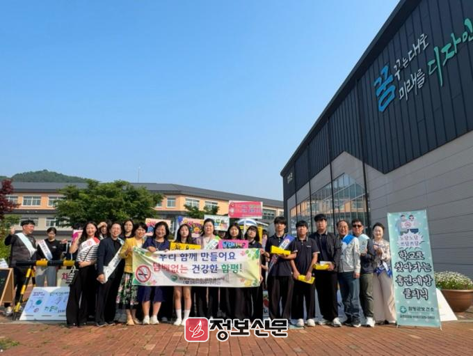 캠페인에는 학생·교직원·학부모 등 약 350명이 참여해 청소년 흡연 예방과 금연 환경 조성을 목표로 금연 포스터, 리플렛, 피켓, 어깨띠 등 시각 자료를 활용해 흡연의 위해성과 간접흡연의 피해를 알리는 활동을 펼쳤다.