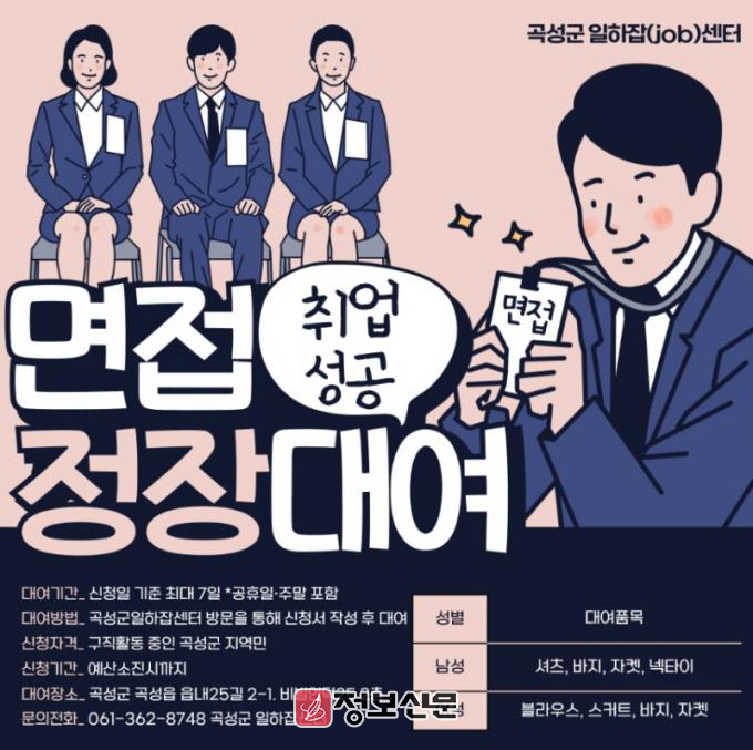 ![]() 곡성군 일하잡(JOB)센터, 면접 정장 무료 대여 지원 확대 실시 |