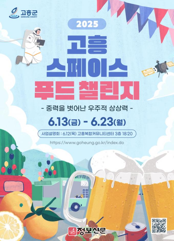 ![]() 고흥군, 2025 스페이스 푸드 챌린지 참가자 모집 |