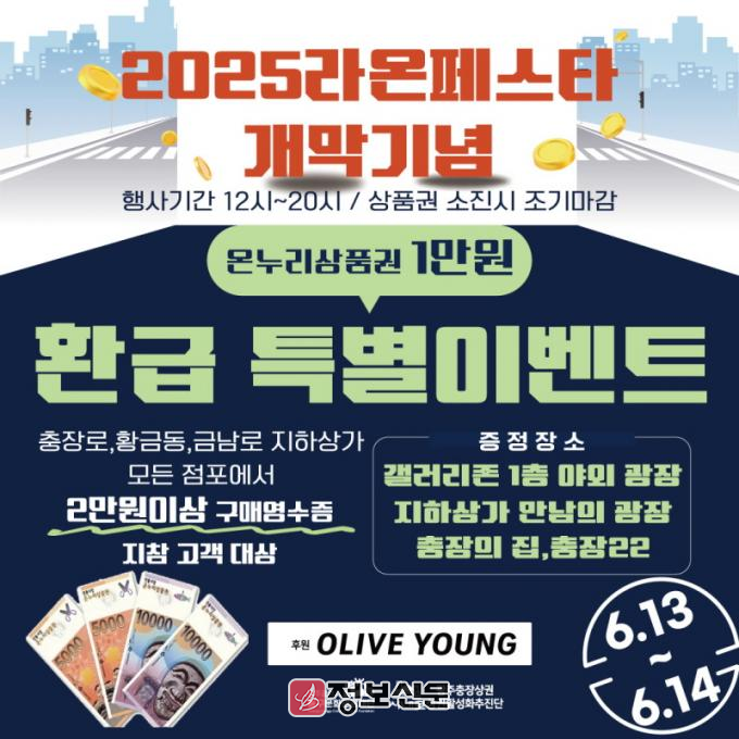 환급 행사는 충장 상권 활성화를 위해 개최하고 있는 ‘충장 라온 페스타’ 행사와 연계·운영된다. 일정은 ▲6월 13~14일 라온 페스타 개막식 ▲9월 27~28일 추석 연휴 기간 ▲10월 15~18일 라온 페스타 등으로 지역 소비자뿐만 아니라 외부 관광객의 방문도 유도할 예정이다.