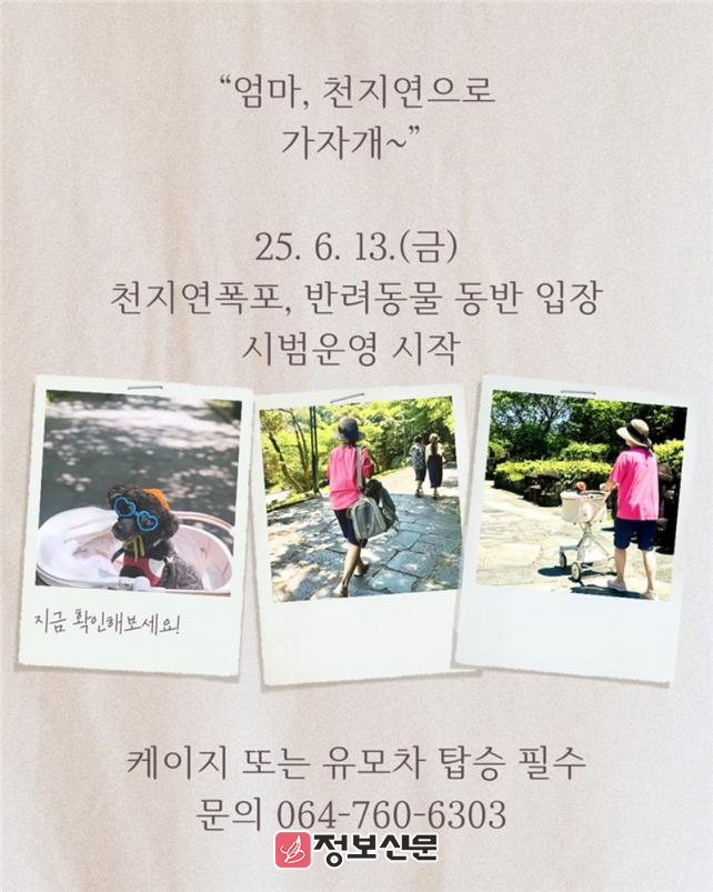 ![]() 서귀포시, 천지연폭포 반려동물 동반 입장 시범운영 실시 |