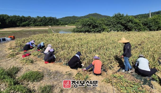 이날 작천면사무소 직원 10여명은 최근 인건비 상승과 고령화 등으로 노동력 확보에 어려움을 겪고 있는 농가에 도움을 주기 위해 마늘 수확에 구슬땀을 흘리며 작업을 진행했다.