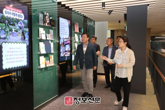 김산 군수를 비롯해 자치행정과장, 관련 부서 담당자 등 9명이 의정부 영어도서관, 음악도서관, 미술도서관을 찾아 공간 배치와 특화 프로그램 운영 사례를 꼼꼼히 살폈다. 특히, 도서관 관계자들과의 면담을 갖고 이용자 중심의 도서관 운영 방향에 대한 다양한 의견을 청취했다.