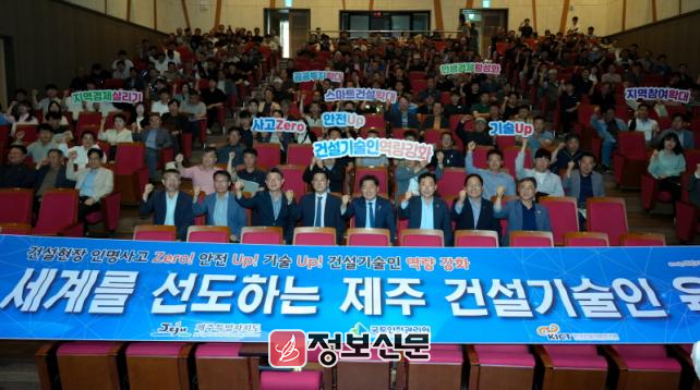 행사 마지막에는 참가자들이 “세계를 선도하는 제주 건설인 나가자”라는 구호를 외치며 제주 건설기술인의 힘찬 도약을 다짐했다.