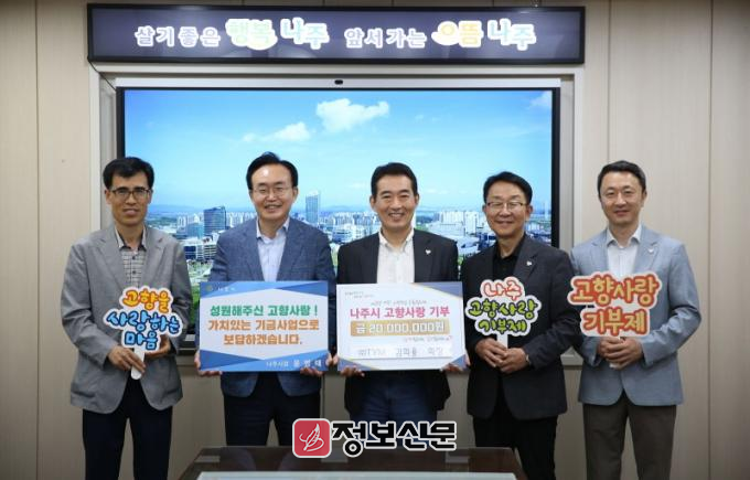 ![]() ㈜TYM 김희용 회장의 고향사랑기부금 기탁식.(사진제공-나주시) |