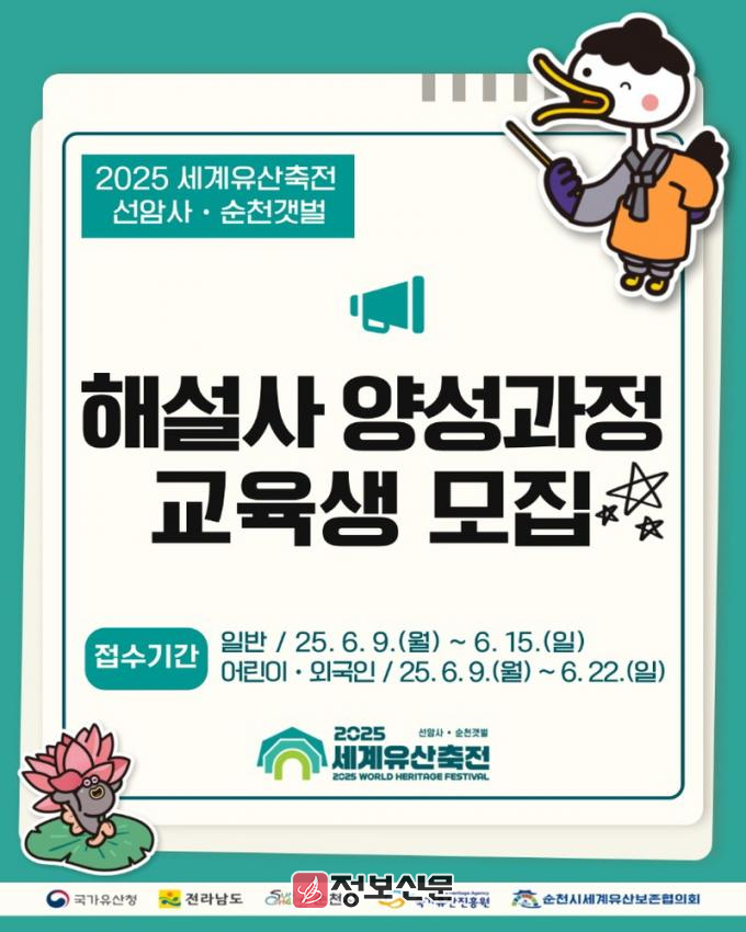 ![]() 순천시, 세대와 국적을 아우르는 순천세계유산축전 해설사 교육생 모집 |