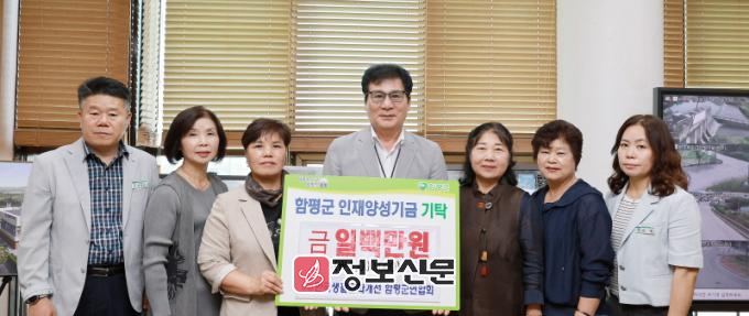 함평군은 11일 “(사)한국생활개선 함평군연합회가 지난 10일 함평군 인재양성기금에 100만 원을 기탁했다”고 밝혔다.