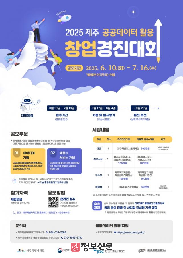 ![]() 제주특별자치도, 2025년 공공데이터 활용 경진대회 개최 |