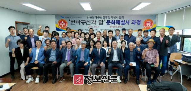 이번 교육과정은 ㈔헌마공신 김만일 기념사업회(이사장 김형수)가 제주국제자유도시개발센터(JDC)의 지원을 받아 운영했다. 임진왜란 당시 군마를 헌납해 국난 극복에 이바지한 ‘헌마공신’ 김만일의 업적을 기리고, 말문화를 활용한 관광 콘텐츠 개발을 목적으로 개설됐다.