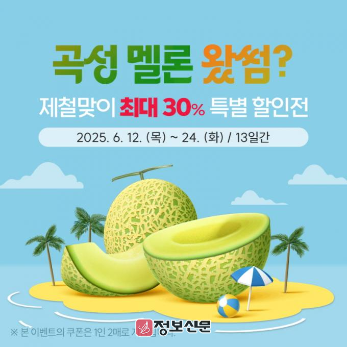 ![]() 곡성몰, 곡성멜론 제철맞이 최대 30% 특별전 진행 |