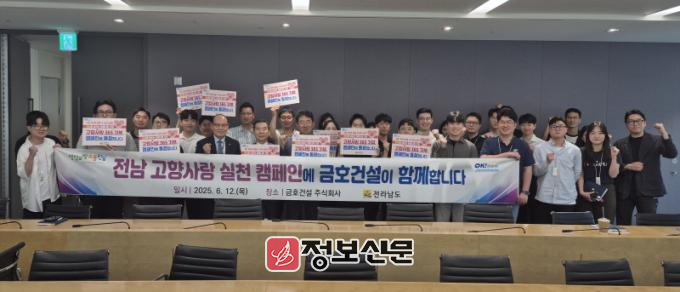 해남 출신인 금호건설 한 임직원은 “임직원들과 함께 전남 고향사랑 실천에 적극 동참하겠다”며 “애향심이 모여 전남 미래 발전의 밑거름이 되길 바란다”고 응원했다.
