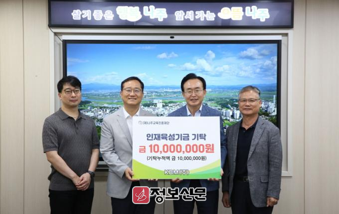 케이비엠(주)은 나주시 빛가람동에 위치한 초경합금 및 전자부품 제조, 무역 기업으로 일과 가정 양립에 앞장서는 나주시 가족 친화 인증기업으로 지정되기도 했다. 2023년과 2024년 취약계층 후원금을 500만 원씩 총 1천만 원을 기탁한 바 있다.
