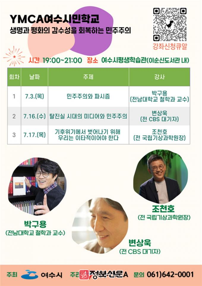 ![]() 여수YMCA, 민주주의 여수시민학교 개최 |