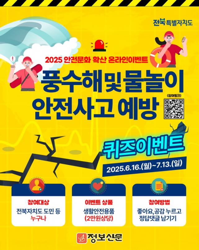 ![]() 전북특별자치도, 안전문화확산 온라인 퀴즈 이벤트 실시 |