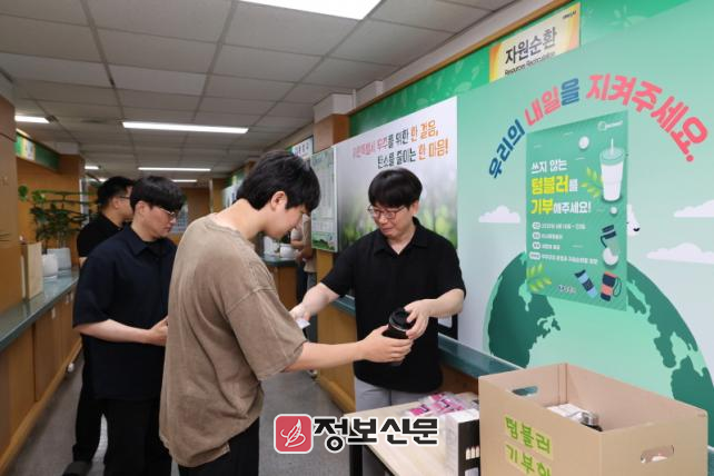 무주군청 공무원과 지역 내 기관 직원 등 누구나 참여 가능하며 가정에서 사용하지 않은 새 텀블러를 23일까지 무주군청 환경과 자원순환팀에 기부하면 된다.