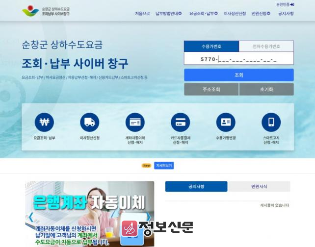 ![]() 순창군, 상하수도요금 납부 위한 실시간 납부 시스템 구축 |