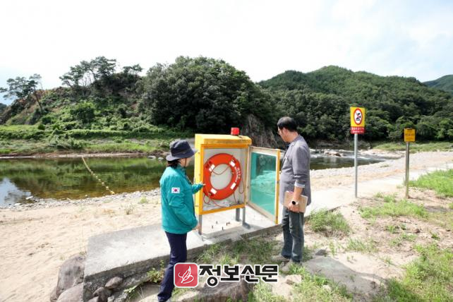 물놀이 안전관리계획을 기반으로 구명조끼와 구명환, 로프 등의 안전시설과 12곳에 설치된 위험구역 안내 표지판을 점검하고 있으며 부표도 설치 중이다.
