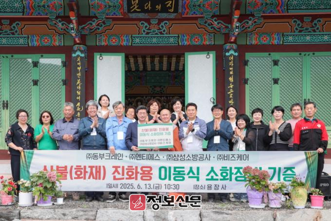 기증된 이동식 소화설비는 엔진이 부착돼 있어 자유로운 이동이 가능하며, 1톤 용량의 물탱크와 75m(25m×3개) 길이의 소화 호스를 갖춰 초기 화재 대응에 효과적으로 활용될 것으로 기대된다.