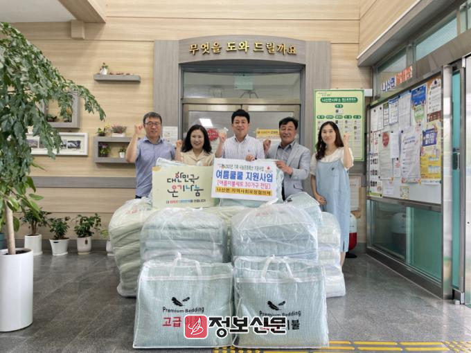 함평군은 17일 “나산면 지역사회보장협의체가 지난 16일 ‘여름쿨쿨 지원사업’을 통해 지역 내 취약계층 30가구에 여름 이불을 지원했다”고 밝혔다.