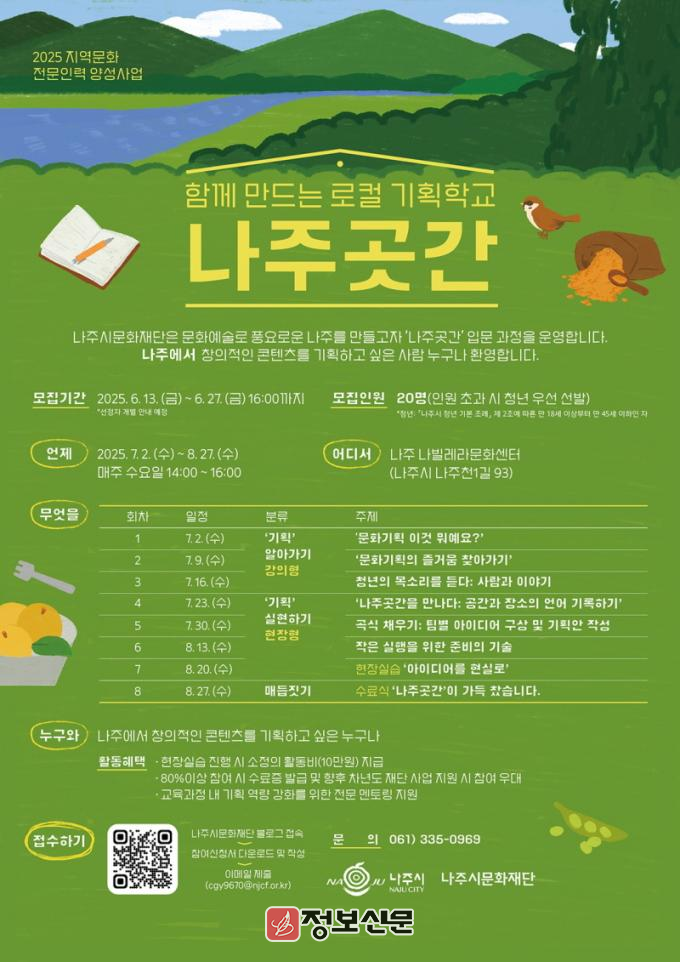 ![]() 나주시, 시민 문화기획자 양성 ‘나주곳간’ 수강생 모집 |