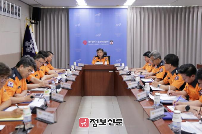 광주소방안전본부는 17일 본부 회의실에서 고영국 본부장과 5개 자치구 소방서장 등이 참석한 가운데 여름철 재난대응 대책회의를 열고, 시민의 생명과 재산 보호를 위한 철저한 비상대응태세 확립에 돌입했다.