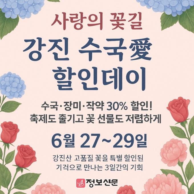 강진군 관계자는 “이번 수국愛 할인데이는 단순한 축제를 넘어 지역 화훼 농가와 소비자가 함께 만드는 희망의 장”이라며 “꽃 한 송이에 담긴 농가의 정성이 소비자와 연결돼 강진 화훼가 대한민국을 대표하는 고품질 브랜드로 도약하는 출발점이 되기를 바란다”고 말했다.