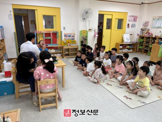 이번 사업은 치과 공중보건의사와 구강보건사업 담당자가 직접 유치원과 어린이집을 방문해 구강교육을 실시한 후, 충치 예방을 위한 불소도포를 실시했다.