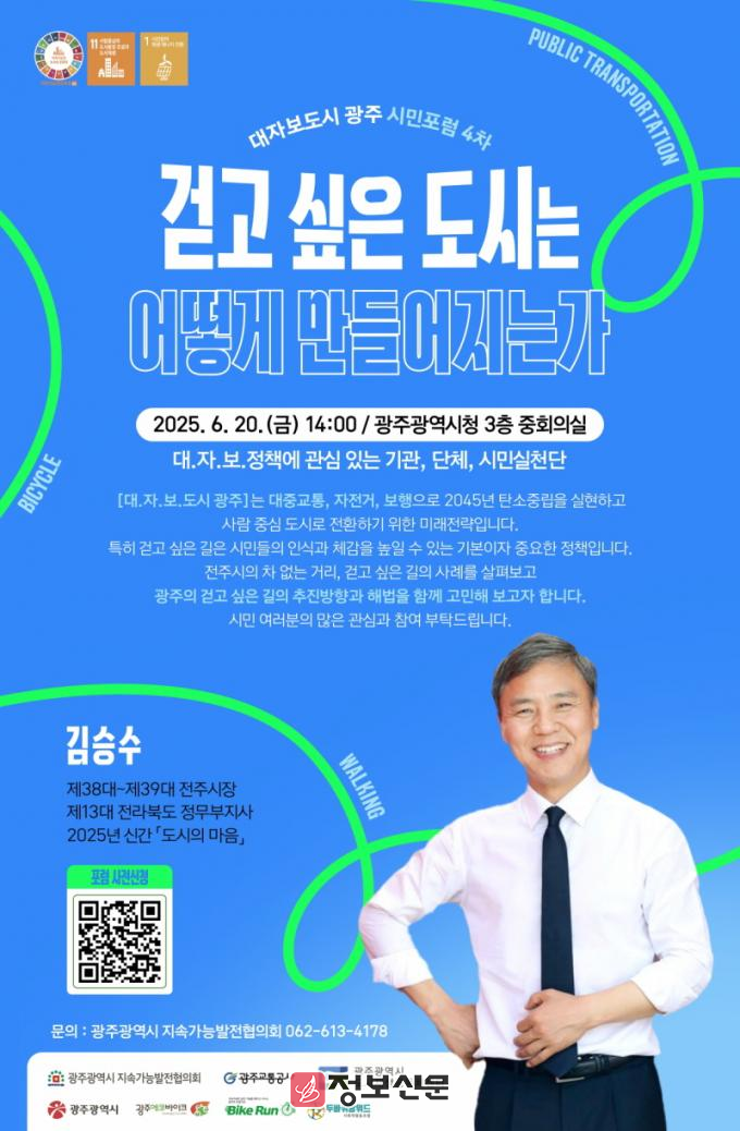 한편, 대자보 도시 광주 시민포럼은 지난해부터 ▲보행환경‧자전거 ▲교통약자 이동편의 증진 ▲간선급행버스체계(BRT)를 주제로 세차례 열렸다.