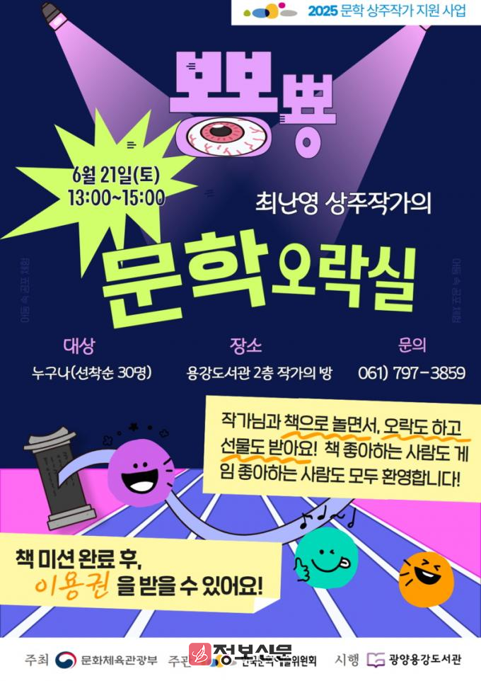 ![]() 광양용강도서관, 작가의 방 이벤트 「뿅뿅 문학 오락실」 운영 |