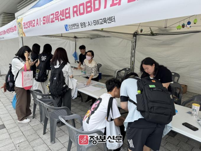 조선대학교는 입학처와 AI·SW교육센터 조영주 교수를 중심으로, 컴퓨터공학과 3학년 조윤성, 신수빈, 박지후 학생조교진과 함께 ‘ROBOT과 함께~AI 전지적 진로시점!’을 주제로 한 AI 진로 체험 부스를 직접 기획·운영했다.