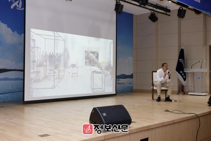 이번 강연은 비금도 원평해변에 설치 예정 작품인 ‘엘리멘탈(Elemental)’을 설명하는 자리로 민간인, 대학생, 관내 교직원 등 300여 명이 참석해 뜨거운 관심 속에 진행되었다.