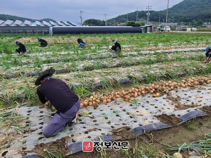 건설교통과 직원 18명은 불갑면 안맹리 양파 재배 농가를 찾아 1,000여 평의 밭에서 양파를 수확하고 밭을 정리하며 구슬땀을 흘렸다.
