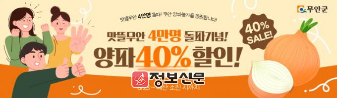 ![]() 무안군 맛뜰무안몰, 회원 4만 명 돌파 기념 양파 할인전 진행 |